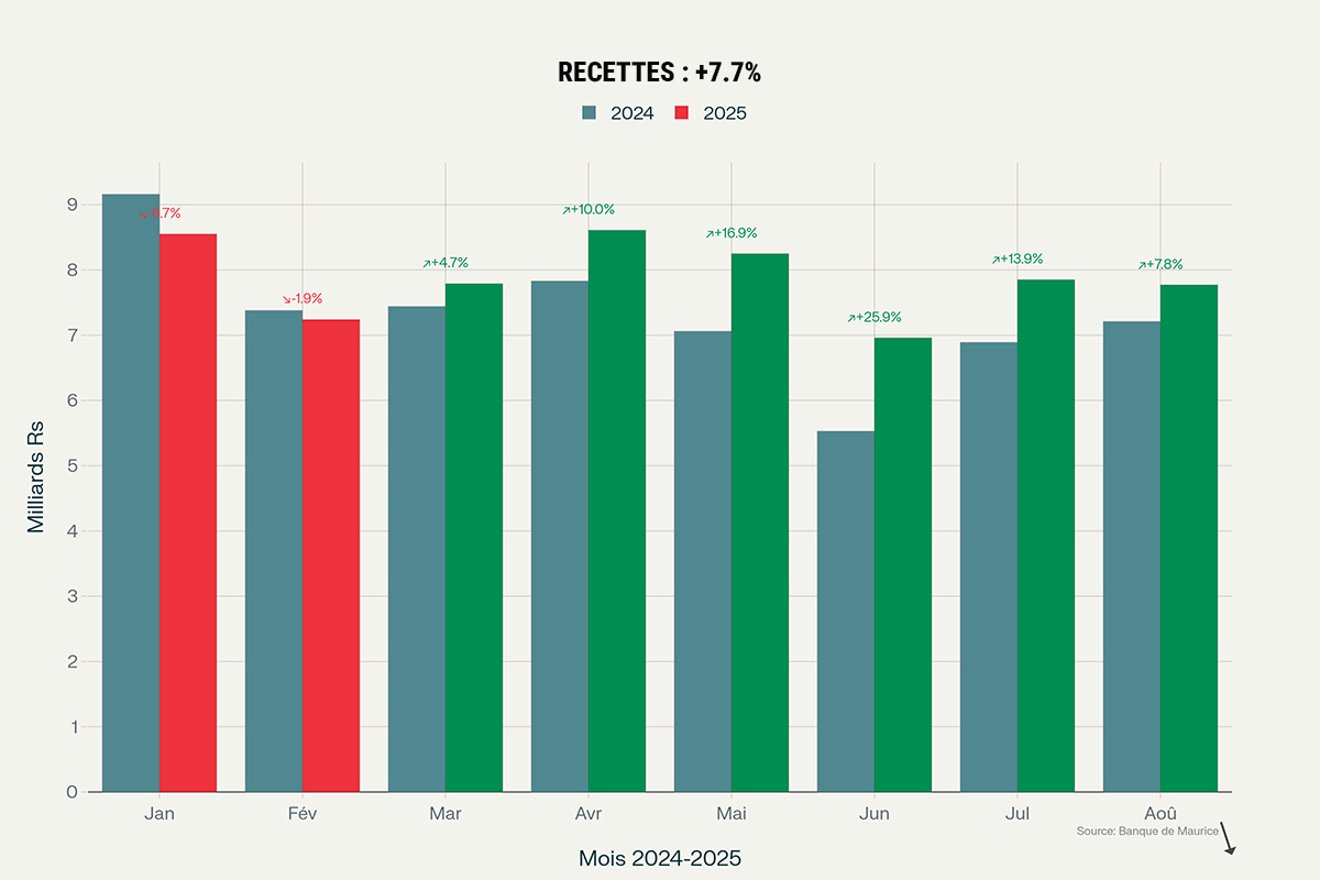Sur le plan financier, les recettes touristiques pour les mois de janvier à août ont progressé de 8 %, passant de 58,5 à 63 milliards de roupies, selon la Banque de Maurice. Cette amélioration s'explique notamment par l'appréciation de l'euro vis-à-vis de la roupie mauricienne. L'île devrait ainsi clôturer l'année 2025 avec des revenus supérieurs aux 93,6 milliards de roupies estimés pour 2024.
