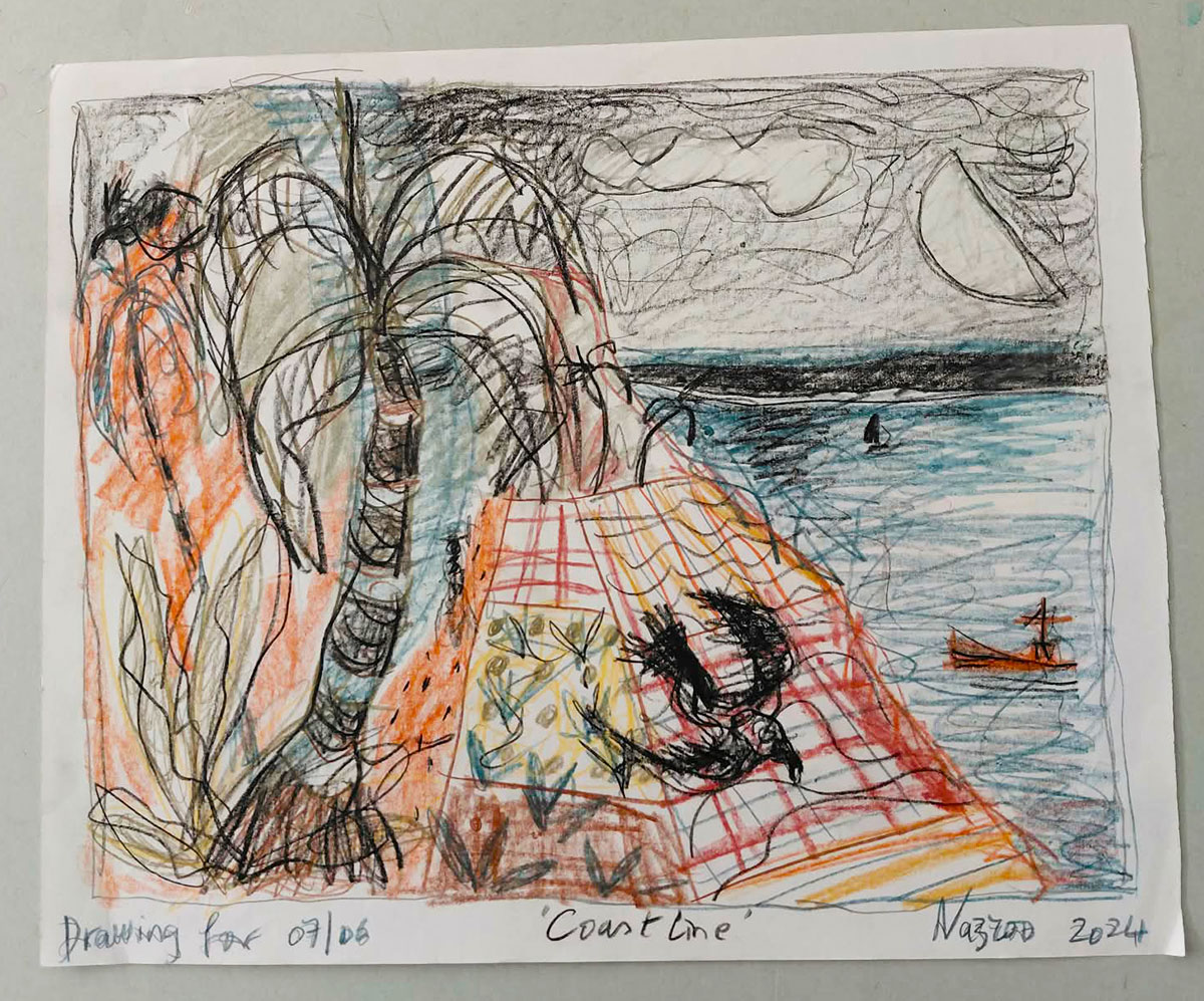 C'est d'ailleurs vers Picasso que se tourne son admiration la plus fervente. Lorsqu'il est à Paris, Khalid Nazroo ne manque jamais de consacrer une demi-journée au Musée Picasso, installé dans le splendide Hôtel Salé du Marais. Un pèlerinage qui en dit long sur ses exigences artistiques. Son plus grand plaisir ? Se retrouver dans son atelier — il en a occupé plusieurs, à Maurice comme à l'étranger — ou travailler ses Photoprints, ces œuvres nées du dialogue entre création plastique et technologie numérique.