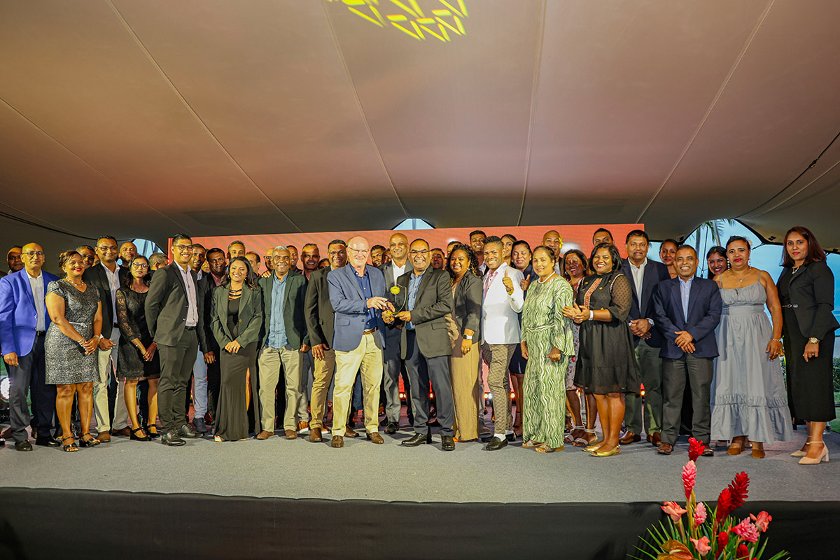 François Eynaud, directeur général de Sunlife, accompagné de Guillaume Dalais, directeur général du groupe CIEL, a présidé cette soirée de reconnaissance qui rassemblait les collaborateurs de l'ensemble des établissements du groupe : Sugar Beach, Long Beach, La Pirogue, Ambre, sans oublier les boutiques Life in Yellow d'Île aux Cerfs et les équipes du siège social.