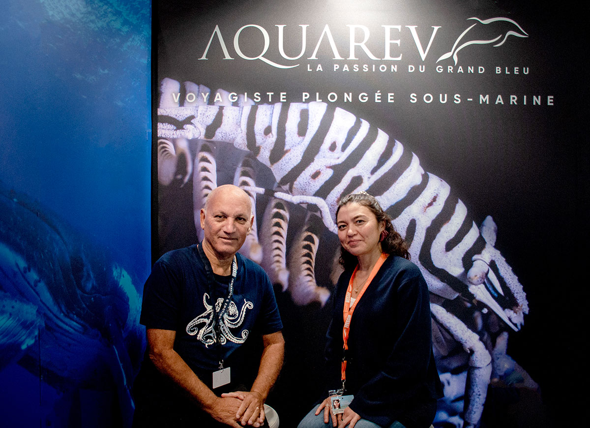 À l’invitation de l’agence Aquarev, spécialisée dans les croisières dédiées à la plongée, Hugues Vitry, figure connue de l’événement parisien dédié à la plongée, partage le stand de l’agence pour présenter l’offre de son centre Blue Water Divers, situé dans le nord de l’île Maurice. Il y propose aux passionnés une expérience unique au cœur des fonds marins et fournit également des informations sur la destination Maurice, avec l’accord de Sophie Ducoup, directrice générale d’Aquarev.