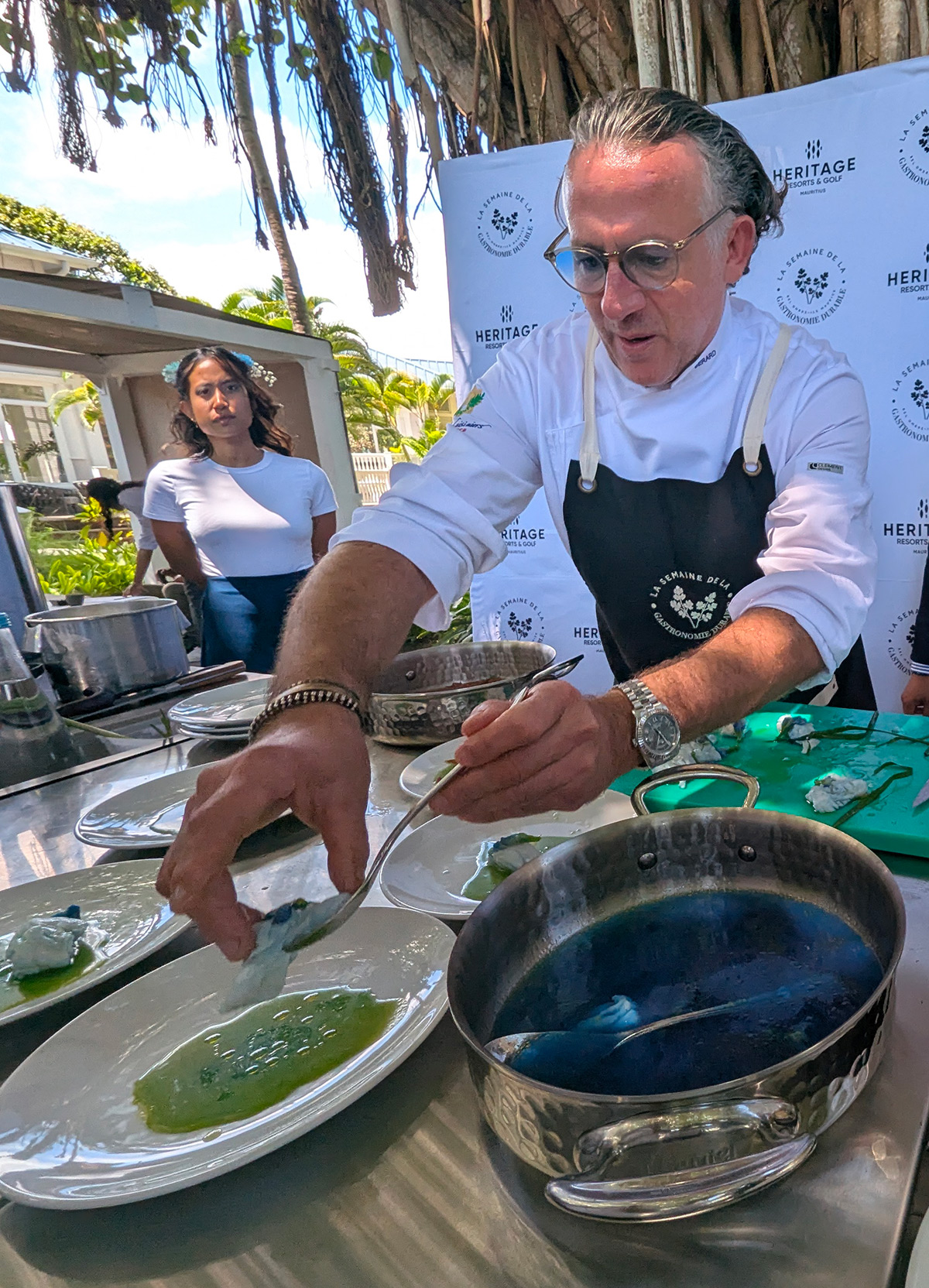 Dans le cadre de la Semaine de la gastronomie durable à Heritage Le Telfair, Jean-François Bérard a dévoilé, hier, une masterclass aussi singulière qu'édifiante, intitulée « L'eau dans tous ses états ». Un voyage culinaire où chaque geste technique se transforme en manifeste écologique, où la précision du geste rejoint l'élégance du propos.